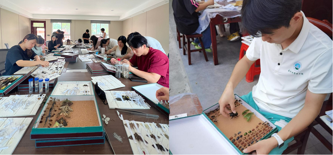 同学们在指导教师的带领下,坚持每天至少近12小时的野外工作,白天采集昆虫和植物病害标本,观察各种植物;在炎热的中午还利用午休时间进行标本整理与制作;晚上则分组轮流通宵灯诱昆虫,充分地发挥了吃苦耐劳和团结协作的精神,熟练地掌握了“知虫识病”的调查方法。