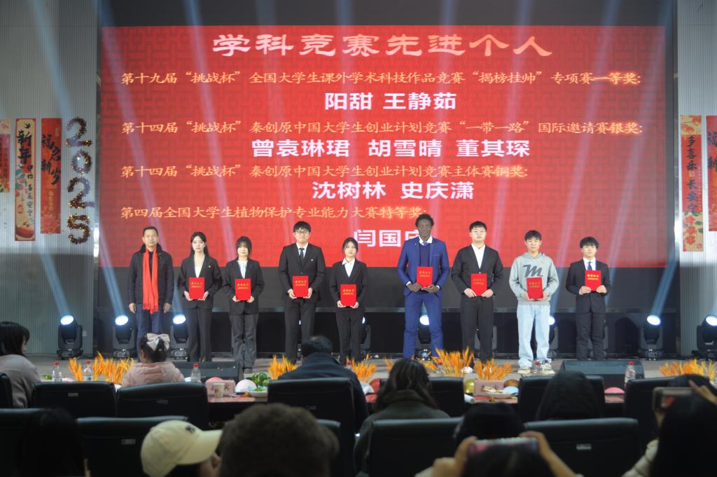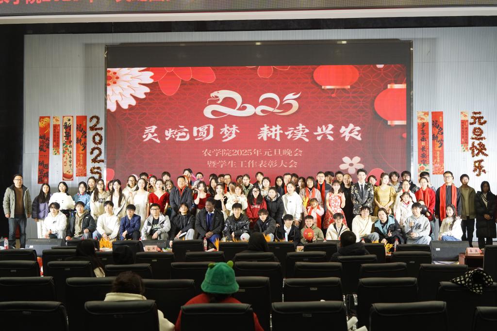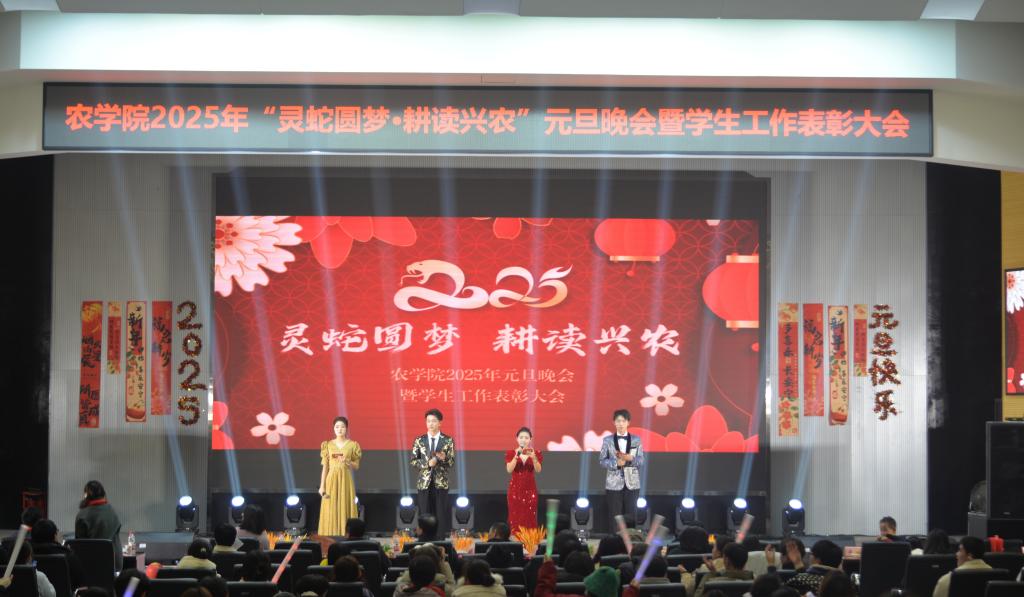 (通讯员:吴静宜 付雪娇 严树彬 向建华 涂星雨)祥龙回首辞旧岁,金蛇起舞迎新年。12月31日晚,三亿(中国)一站式服务官网2025年“灵蛇圆梦·耕读兴农”元旦晚会暨学生工作表彰大会在农科大楼1058隆重举行。参加本场晚会的嘉宾有党委学生工作部部长张科、校团委书记毛德波、党委研究生工作部副部长黄龙、党委学生工作部副部长李秋果、校团委副书记信晓阳、平台与实验室管理处副处长谭亮魁、党委宣传部科长李胜杰及兄弟学院的师生,三亿(中国)一站式服务官网党委书记周锦华、党委副书记尹小华及学工队伍、任课老师参加晚会。