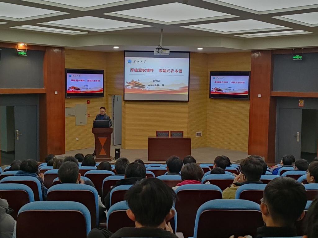 随后,党委副书记尹小华开展“厚植爱农情怀,练就兴农本领”的主题讲座。他从历史和现实的角度出发,分析了当今农业发展的局势,并殷切地希望同学们能勇于担当时代使命,通过巩固专业知识来实现自我的价值,为实现中华民族伟大复兴梦做出贡献。此外,还介绍了学院的基本情况,包括悠久的历史、雄厚的师资、丰硕的科研成果以及优秀学生的突出表现,激励新生扎根农学,树立学农自信,学好专业技能,努力成为农业新型人才。