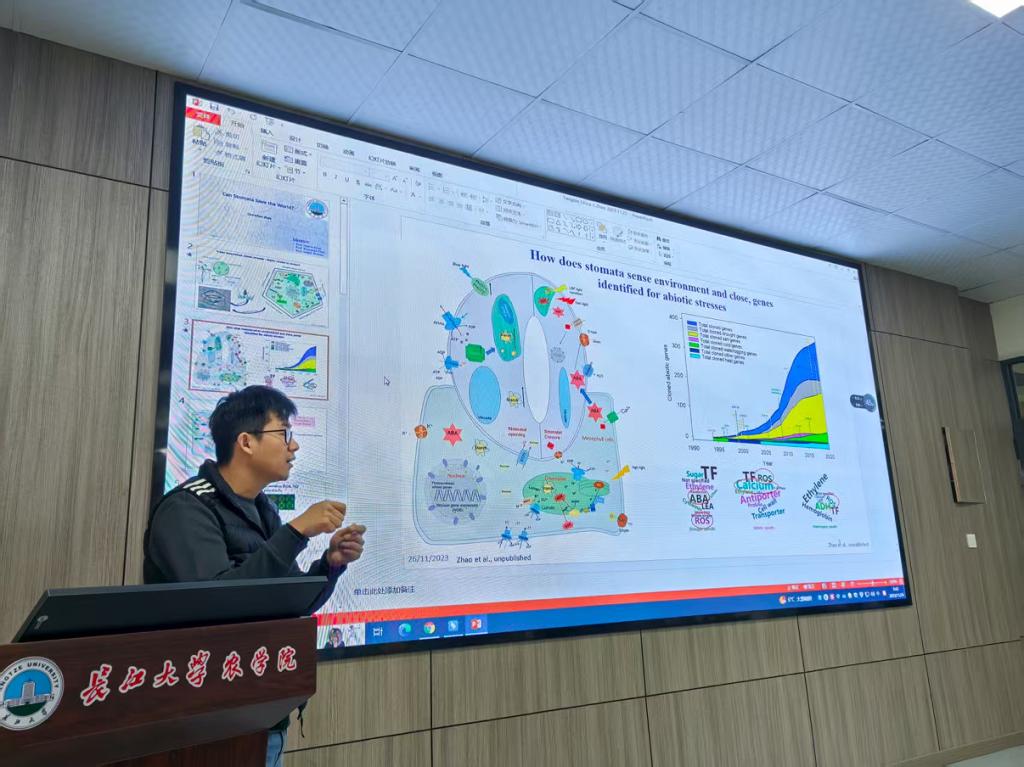 (通讯员 邓锋林)3月31日上午,三亿(中国)一站式服务官网求实导师学术沙龙专场活动在农科楼3073举行。活动中,赵晨晨博士作了题为“Can stomata save the world” 的学术报告,围绕植物气孔的分子进化历程及其在环境适应性中的关键作用展开。他结合全球气候变化背景,分析了气孔在调节植物水分利用效率、光合效率以及抵御极端环境方面的重要性。报告介绍了其多年来在干旱、盐胁迫和酸性土壤等典型非生物胁迫条件下,植物气孔适应性机制方面的研究成果,尤其是在解析叶绿体磷酸代谢信号分子在调节气孔开闭和植物干旱胁迫响应中的新进展。这些研究及取得的成果为培育环境适应性作物品种提供了新的理论支撑与种质资源。