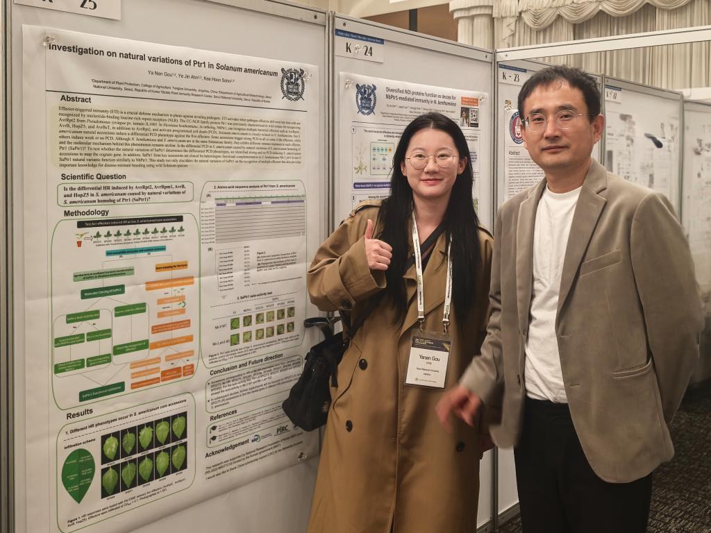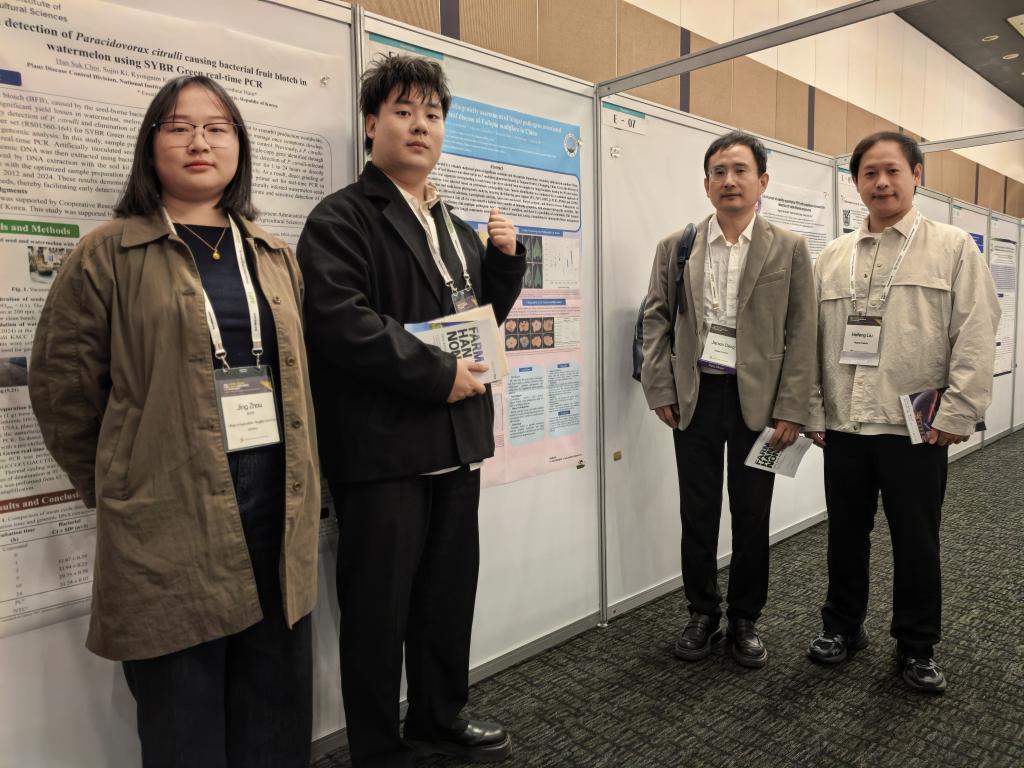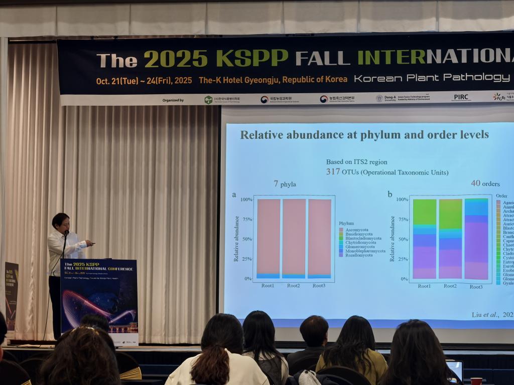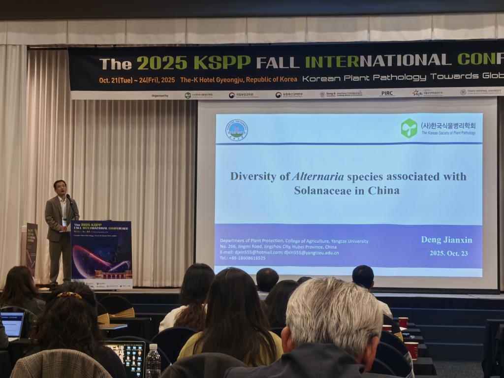随后,10月21日-23日,他们赴韩国庆州参加“The 2025 KSPP Fall International Conference”。我院两位教授分别做了题为,“Diversity of Alternaria Specise Associated with Solanaceae in China” (邓建新教授) 和 “The Microbiome of Zoysia japonica: Diversity and Antifungal Properties of Rhizospheric and Endophytic Microbes”(刘海峰教授)的报告。博士研究生苟亚楠和硕士研究生陈世强分别作了题为“Investigation on nature variations of Prt1 in Solanum americanum” 和 “Identification and pathogenicity of fungal pathogens associated with leaf disease of Fallopia multiflora in China” 的墙报展示。会议期间,对我院通过“创新型人才国际合作培养项目”在韩国首尔大学学习的苟亚楠博士进行了慰问和关心。
