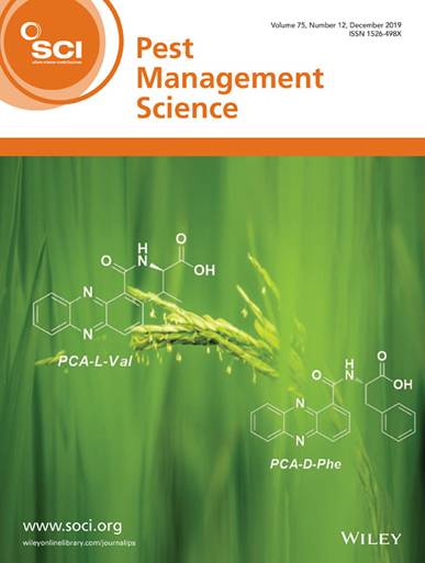 11月7日,三亿(中国)一站式服务官网2018级博士研究生朱祥同学在Wiley旗下期刊Pest Management Science (下称Pest. Manag. Sci.,中科院SCI分区一区) 最新一期 (2019, Volume 75, Issue 12, Pages: 3323-3330)发表题为“The influence of steric configuration of phenazine-1-carboxylic acid-amino acid conjugates on fungicidal activity and systemicity” 的封面论文。朱祥同学和16级硕士生余林花同学为共同第一作者, 其导师李俊凯教授和团队杜晓英副教授为共同通讯作者,吴清来和徐志红两位副教授也参与了指导,本科生黄迪同学参与了化合物合成部分工作,长江大学为第一署名单位。文章可见网址:
