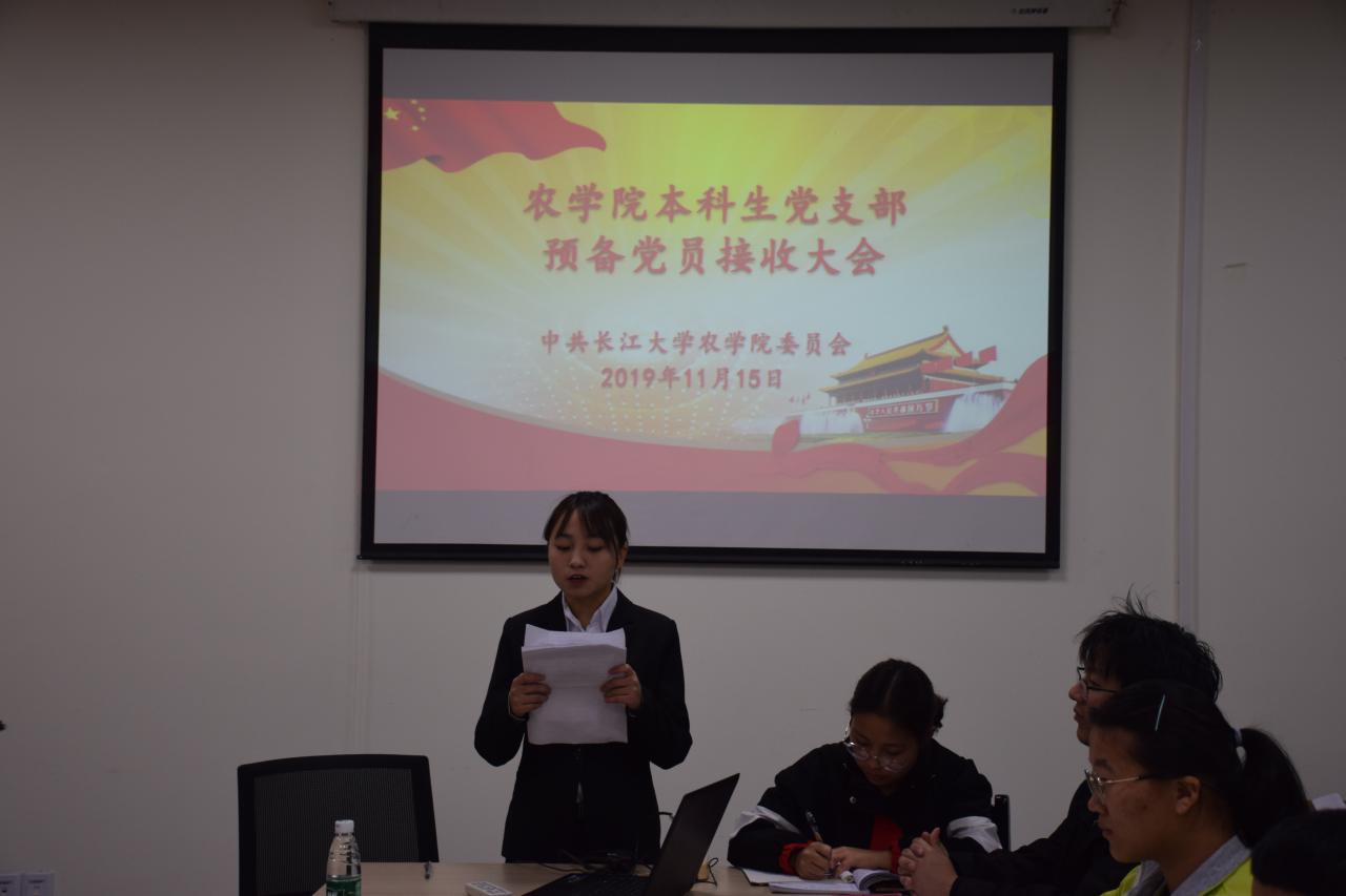 11月15日下午17:30,我院本科生党支部预备党员接收大会在农科大楼3071召开,组织员王金琼、党委副书记谭亮魁、党支部书记尹小华、本科生党支部正式党员、预备党员及发展对象参与此次会议。