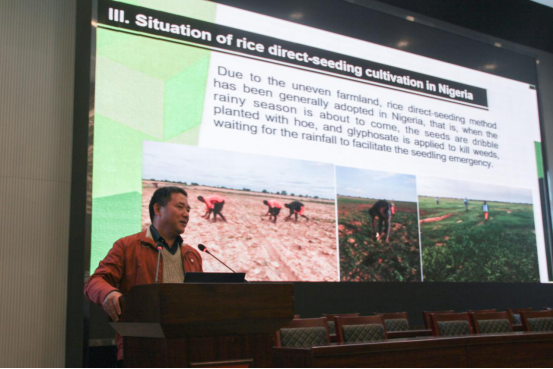 报告会前,播放了CCTV-7《致富经》栏目专题节目“我们在非洲种水稻”。王学民在非洲种水稻的经历引发了师生的强烈反响。报告会上,王学民从尼日利亚等非洲国家的农业生产现状、所在公司发展历程、水稻品种选育、技术研发推广、中非合作的广阔前景和毕业生就业等六个方面展开演讲。他以朴实的语言、具体的案例,使同学们深入了解中非农业发展的现状,极大地鼓舞了同学们专业学习的热情。“在‘一带一路’倡议的引领下,中国为尼日利亚打造了一条育种、种植、加工和推广的产业链,增产粮食超过100万吨,解决了每年80万尼日利亚人的口粮。中国的援非成就受到了国际社会的一致好评,所以说学农不仅有前途,而且大有可为!”王学民讲到。