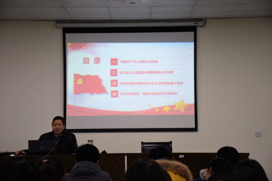 通讯社讯(见习记者 徐小红)为贯彻落实“树立远大理想,牢记党的使命,坚定不移跟党走”的理念,我院于12月5日1900在农科大楼3073会议室开展“不忘初心,牢记使命”主题教育党课。2019下半年参加过入党积极分子、发展对象、预备党员培训的本科生及研究生参加此次党课。党委书记冯发明担任此次党课的主讲人。
