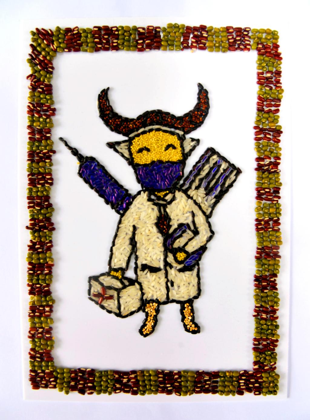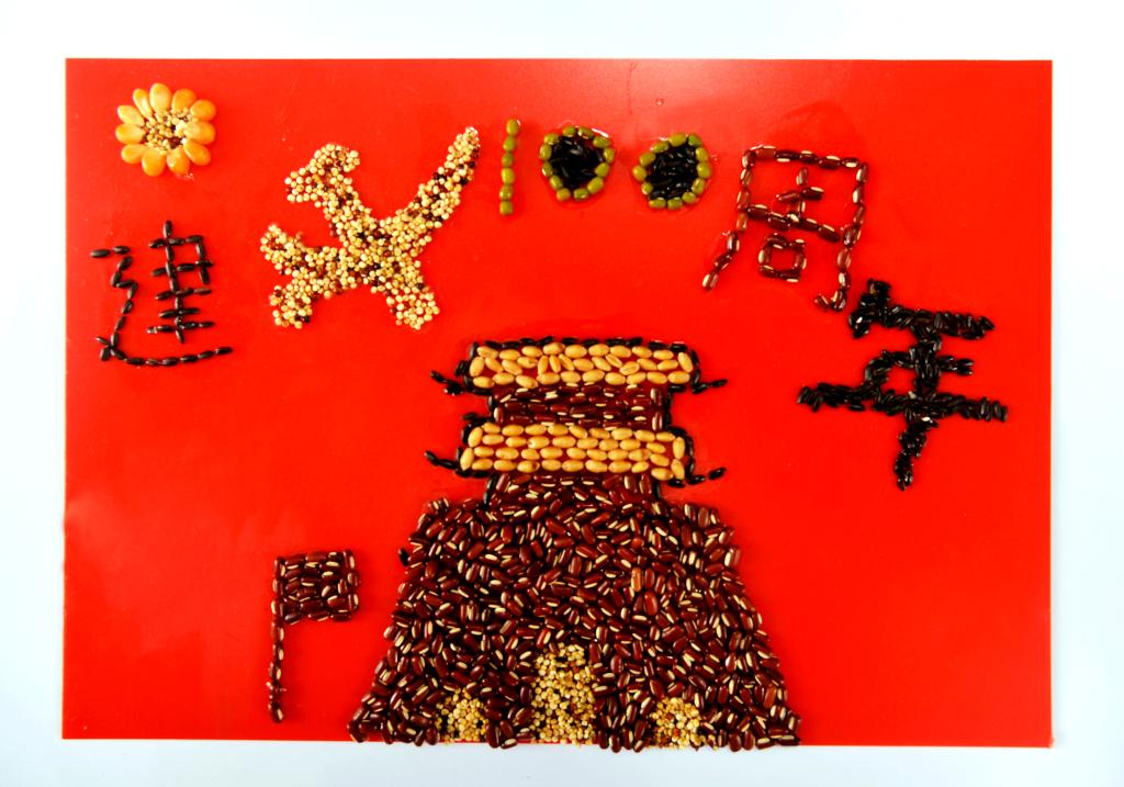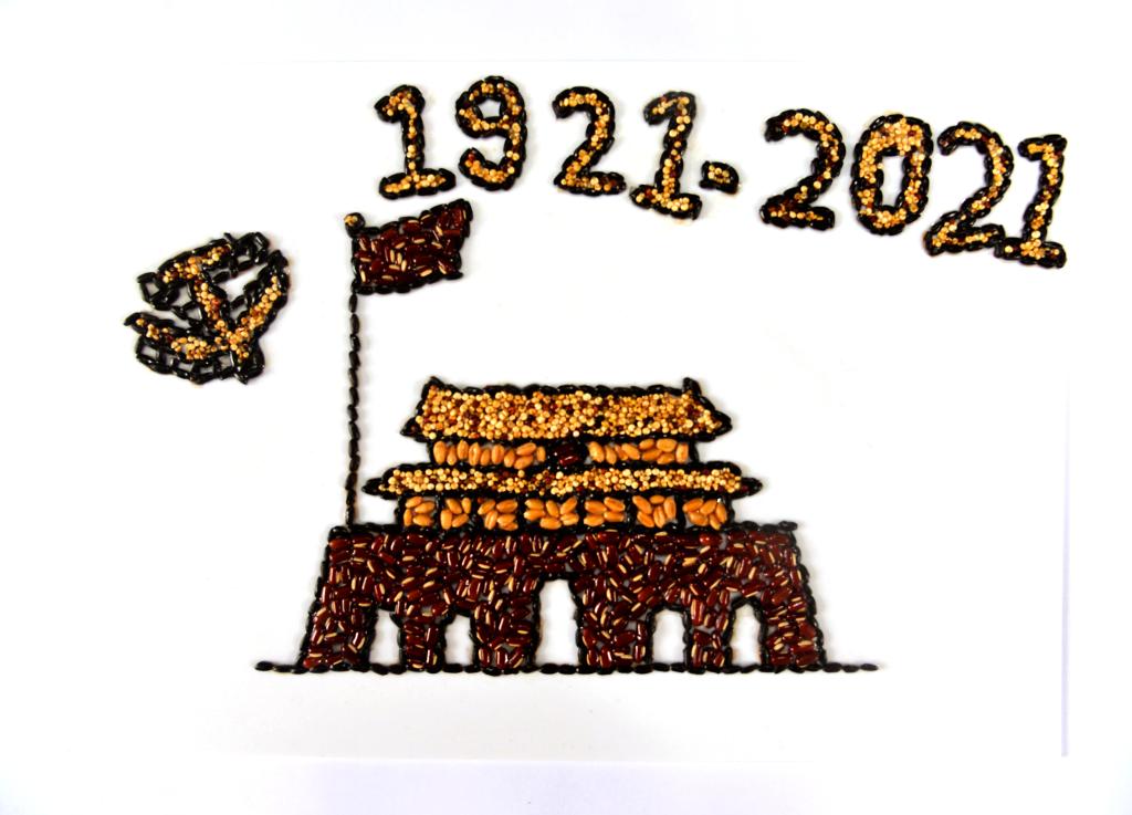 邓元凯等人用藜麦拼出了党徽和五角星,用小麦和玉米展现出华表、和平鸽和金色麦田,在制作“建党百年”四个大字时,他们特意选择了红豆去呈现;为圆“参军梦”,陈苗苗等人用小麦、黑豆和黑米拼出了抗战胜利后解放军威武雄壮的庄严神情。