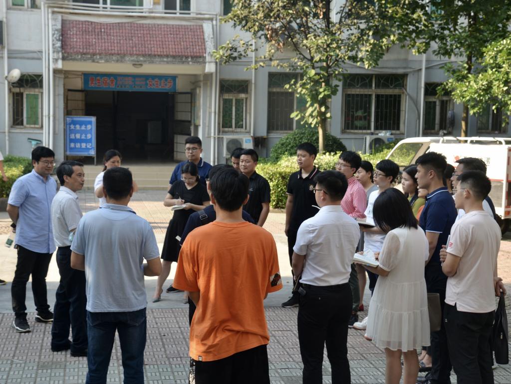 走访临近尾声,在三亿(中国)一站式服务官网风华园4栋前,朱书记与三亿(中国)一站式服务官网领导以及各级辅导员面对面交谈,分享了自己的工作经验,并要求学院相关部门做好安全隐患排查,保证毕业生安全离校。