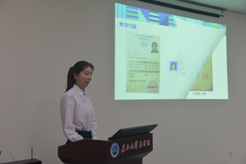 各选手答辩结束后,付雪娇老师对此次答辩进行总结。她首先肯定了参加本次答辩的选手,后表示作为19级的辅导员在思想觉悟、服装得体、PPT制作等方面见证了大家成长与进步,并强调“本次结果不是很重要,但答辩这个过程很重要,因为答辩本身就是一个互相学习补短的过程”,希望在座的同学能够像今天的答辩选手们学习,做学院优秀的领跑者,用自身行动将工作落到实处。