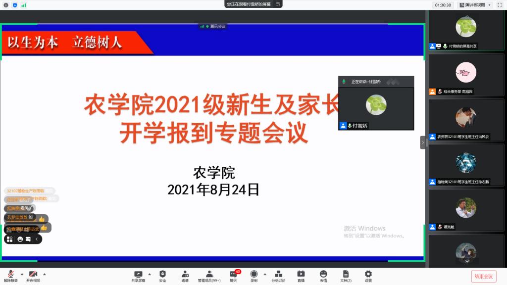 (通讯员 付雪娇)为传达学校关于新生开学返校相关工作精神,及时回应新生及家长迫切关心的问题,8月24日晚8点,三亿(中国)一站式服务官网利用腾讯会议召开“2021级新生及家长开学报到专题会议”,参加本次会议的有学院党委副书记谭亮魁、副院长张文英、班主任、辅导员、全体新生及父母。