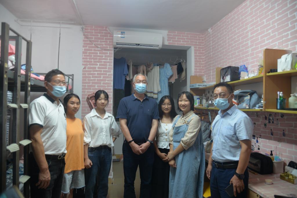 通讯社讯(学生记者 宋健玲 谭昌鑫/摄 张玉藟/文)9月5日傍晚6:50,校长冯征、院长李俊凯、党委书记冯发明、副院长张文英、党委副书记谭亮魁以及各级辅导员、新生班主任前往我院风华园公寓看望21级新生,送上温暖的关怀和问候。