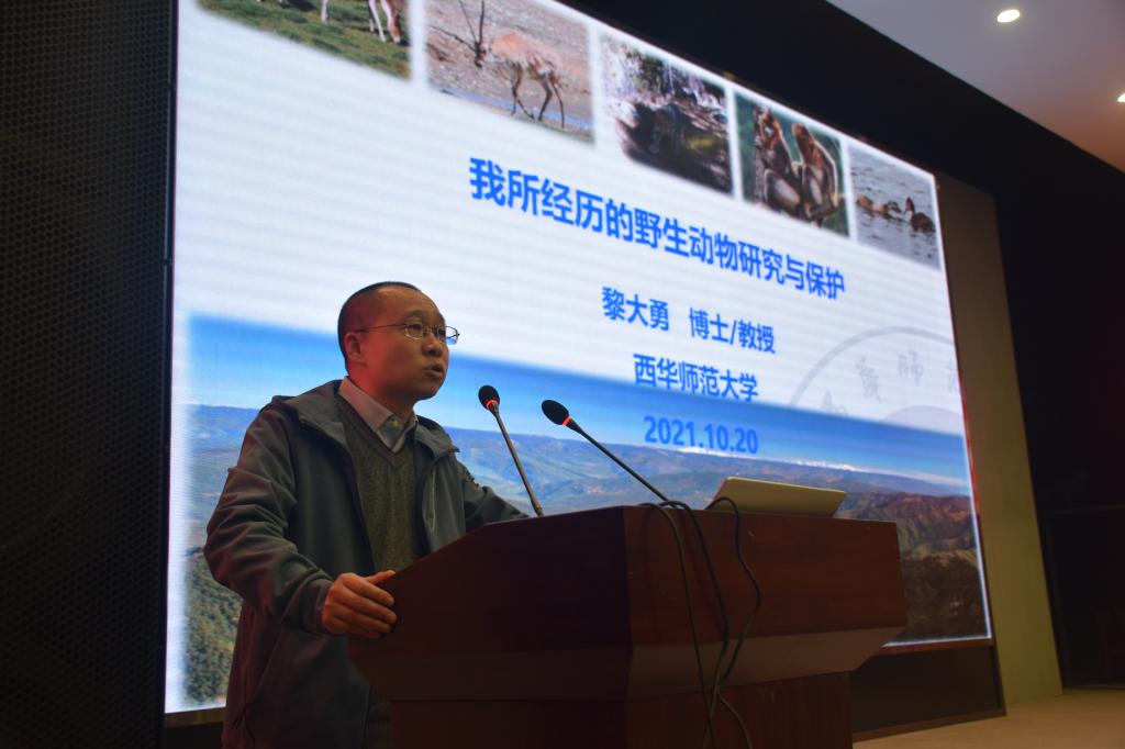 黎大勇教授将此次报告分为个人经历、研究对象、国家重视与君共勉四个方面。首先,黎大勇教授从个人经历出发,联系自身实际,为同学们讲述了从新疆实习工作到成功考上研究生这一路的艰难。随后,黎大勇教授向同学们展示了一些研究对象精美的照片——马鹿、藏羚羊、藏野驴、白唇鹿、岩羊、藏原羚。这引起了同学们的好奇。最后,通过比较国内外对生态环境的保护强调了我国对生态环境的重视与维护,就三大重要研究向同学们展示未来国家发展前进的方向。