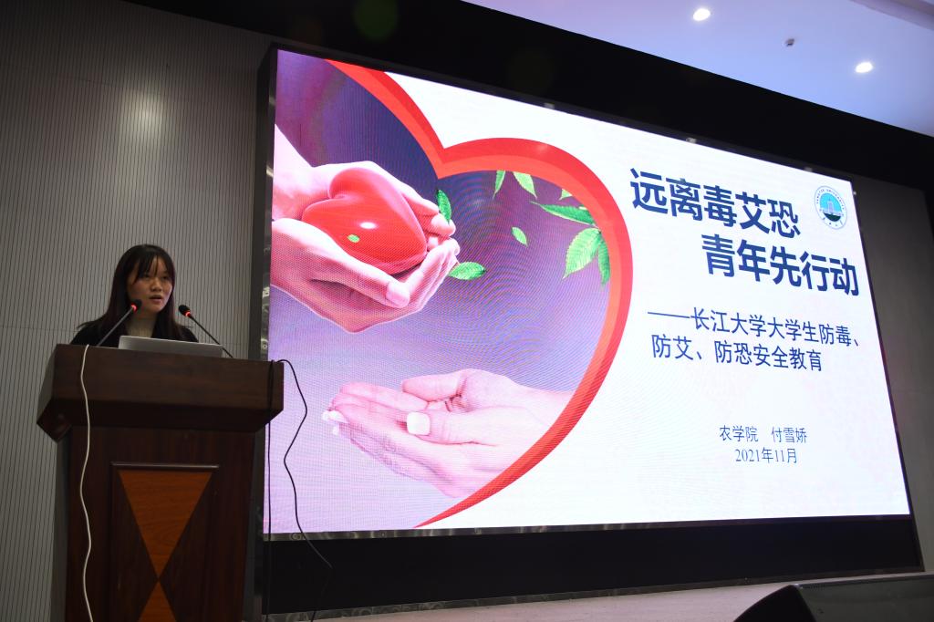 最后,付雪娇老师告诉同学们要远离毒艾恐青年先行动——在前几位辅导员老师内容的基础上,说到我们一定要记住大学生安全类别12字诀:吃住行盗水火毒艾恐坛心网。仅12字,完美的诠释了安全教育。如今的毒品多种多样,付雪娇老师以多个视频让我们要正确认识的危害,抵制诱惑,生命是无价的。