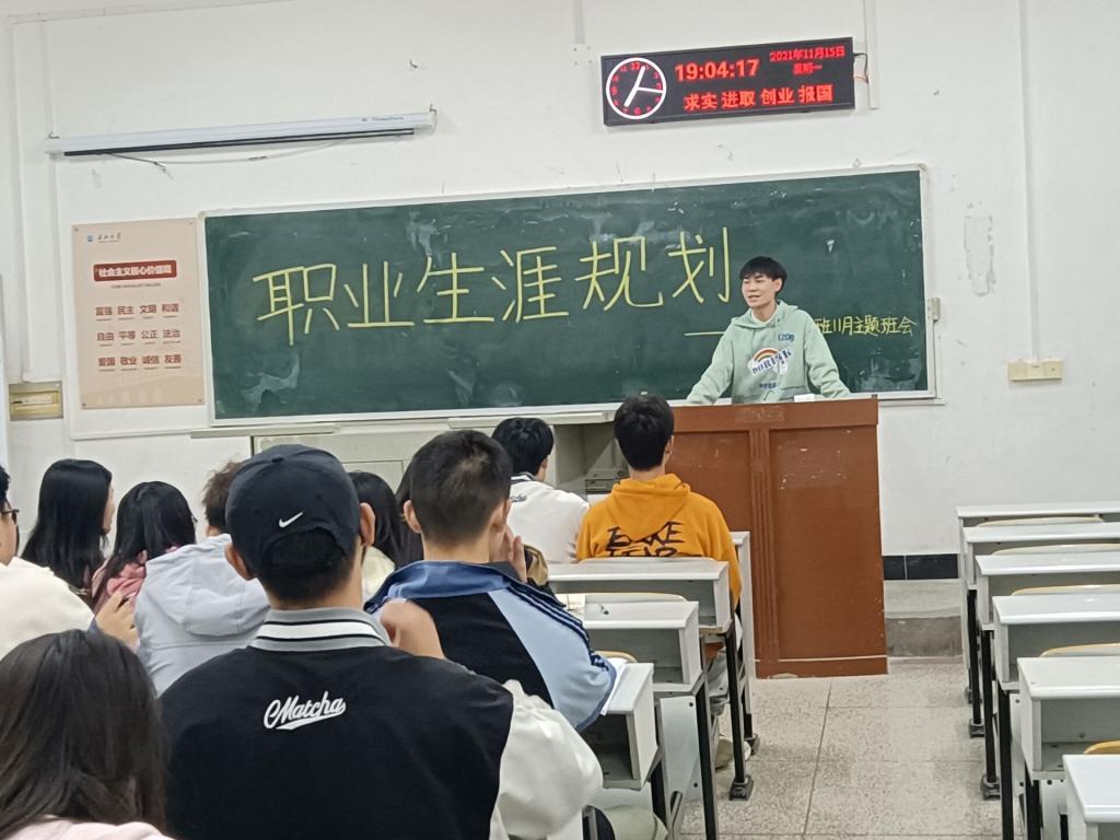 通讯社讯(见习记者 李雅倩)为了帮助同学们了解所学专业及其就业前景,使同学们了解到职业规划的重要性,并为同学们的职业规划提供不可或缺的指导,我院本科生各班于11月11日至11月15日陆续组织开展了职业生涯规划主题班会。