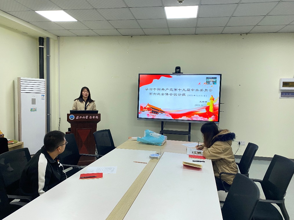会议最后,支部书记付雪娇同志作总结发言,指出所有党员在学习贯彻十九届六中全会精神过程中,要从党的奋斗历程和伟大成就中鼓舞斗志,明确方向;从党的百年历史经验中汲取智慧和力量,始终铭记过去,自觉践行初心使命,增强四个意识、坚定四个自信、维护两个确立,把思想和行动统一到十九届六中全会精神上来,并提出,作为研究生党员,要牢牢握紧新时代的接力棒,用更加昂扬的姿态迎接挑战,攻克各种难关,做好、坐稳新时代接班人。