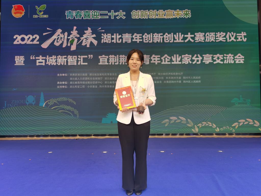 通讯员 李雅倩 夏应翔青春喜迎二十大,创新创业赢未来。6月24日,由荆州团市委承办的 2022年“创青春”湖北青年创新创业大赛在荆州举行。我院周燚教授指导的“猪粪转化育苗基质的资源化利用技术”项目获得乡村振兴专项决赛金奖,团省委书记周森锋、市委书记吴锦亲自为主讲人柴梦莹颁奖。