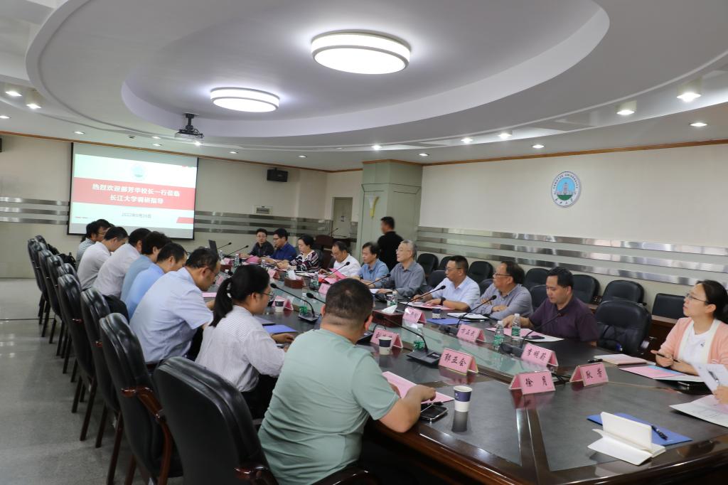 下午推进会由华中师范大学科技处处长王海主持。我校校长冯征致辞并介绍学校基本概况。郝芳华就校际合作发表了重要讲话。我校科技处处长何文祥代表学校重点介绍长江大学办学和科研情况。院长李俊凯、副院长方正武代表学院参加推进会,李俊凯就校际学院之间务实合作进行了重点发言。双方科技处、相关学院的领导和项目组成员参加会议,