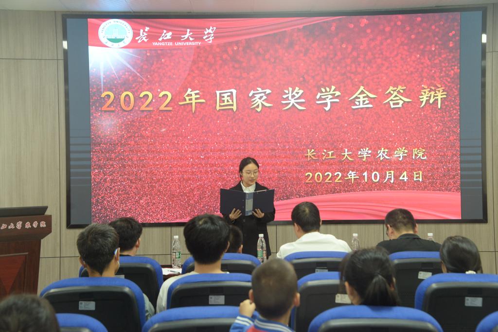(通讯员 李雅倩 李虹晓)为倡导优良学风,树立先进典型,表彰青春榜样,激励广大学生勤奋学习,遵循国家奖学金评选工作公平、公正、公开的原则,我院于10月4日中午在农科大楼3073举办2021-2022学年国家奖学金答辩会。本次答辩由党委副书记尹小华老师、植保系尹军良老师、农资系李继福老师、农学系邓锋林老师、辅导员杨云锋老师、侯聪老师、付雪娇老师以及学生代表何海艳、郝梨和曾袁琳珺担任评委。本次答辩由巨清清同学主持。