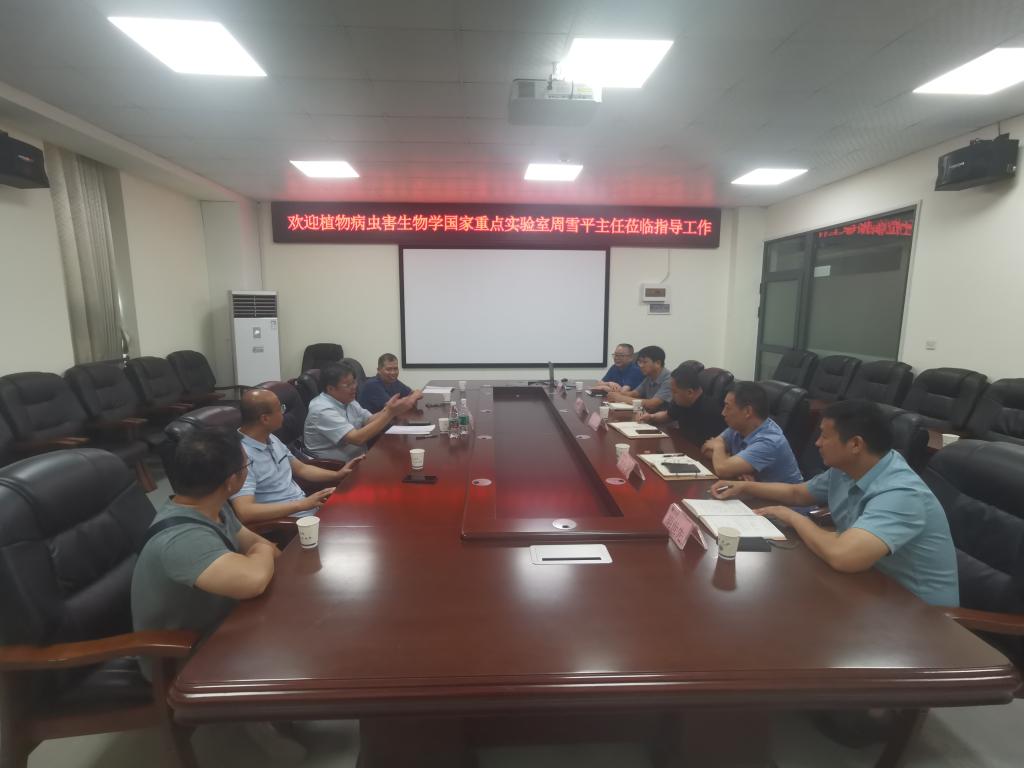 8月14日,中国农业科学院植物保护研究所原所长、国家级人才计划入选者、植物病虫害生物学国家重点实验室主任周雪平研究员来校讲学和指导工作。
