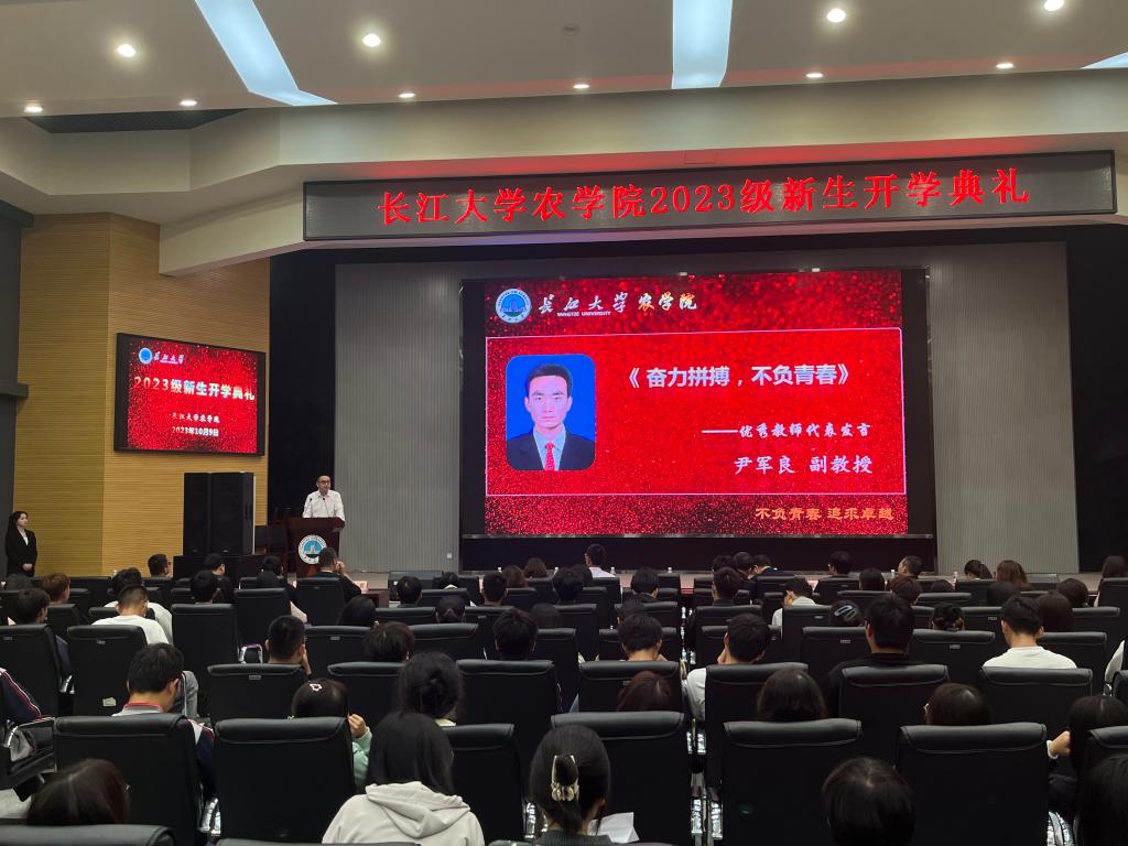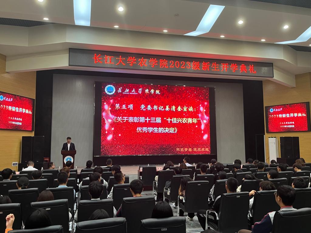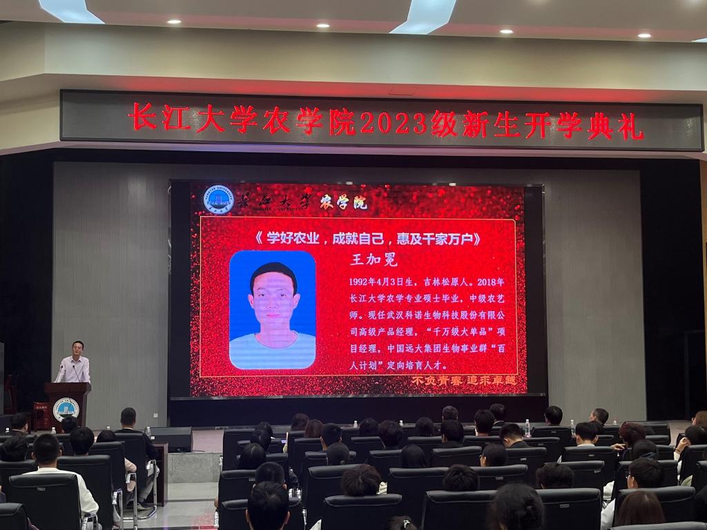 (见习记者 文/赵雨洁 图/向建华)兰叶春葳蕤,桂华秋皎洁。伴着满院桂香,三亿(中国)一站式服务官网2023级新生开学典礼于10月9日19:00在农科大楼1058报告厅举行。学院领导班子、企业代表武汉科诺生物科技股份有限公司经理王加冕、教师代表、十佳兴农青年及全体2023级新生出席典礼现场。开学典礼由党委副书记尹小华主持。