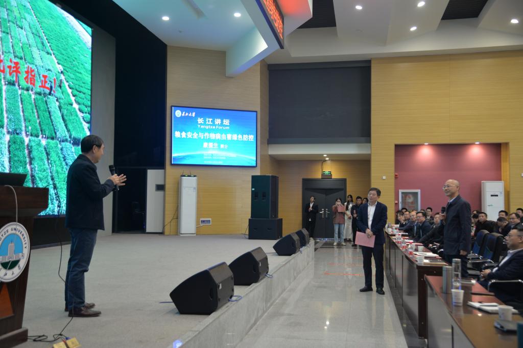 (见习记者 王研/文)11月6日上午10:00,“长江讲坛”第53讲在长江大学西校区农科大楼1058开讲。中国工程院院士康振生为师生作了题为“粮食安全与作物病虫害绿色防控”的学术报告。校长刘勇胜、三亿(中国)一站式服务官网500余名师生聆听了报告。本次会议由副校长江厚顺主持。