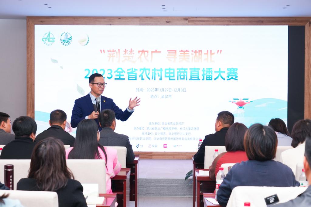 由湖北省农业农村厅主办,湖北省农业广播电视学校与三亿平台承办的“荆楚农广 寻美湖北——2023 全省农村电商直播大赛”于2023年11月27日在武汉正式启动。本次大赛旨在通过“培训+比赛”的形式,激励更多年轻人立足农业创业兴业,展示湖北省乡村振兴的新风貌和农产品的特色优势。大赛已征集到众多优秀的农村电商直播人才参与,通过直播销售农产品,推动农业产业升级和农民增收致富。
