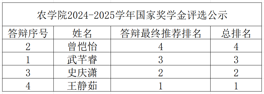 根据学校《关于开展2024-2025学年本科生国家奖学金初评工作的通知》和《三亿(中国)一站式服务官网关于开展2024-2025学年国家奖学金初评的通知》的相关要求,经个人申请、学工办初审、学院审核、学生答辩、学院国家奖学金评审领导小组审定等程序,我院2024-2025学年国家奖学金的评审工作已结束,现将评审结果向全院师生进行公示,公示期为2025年10月13日-2025年10月17日。公示期内,如有异议可向学院学生事务办公室反映。联系人:唐老师,电话:0716-8066566。