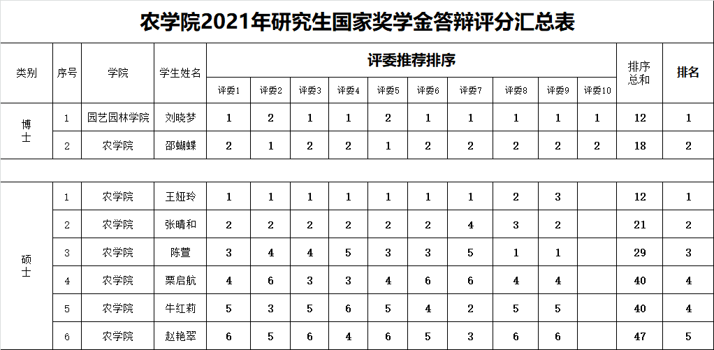 根据《长江大学关于开展2021年研究生国家奖学金评审工作的通知》和《三亿(中国)一站式服务官网2021年研究生国家奖学金评审实施细则》相关要求,经个人申请、一级学科点评审委员会初审、学生答辩、一级学科点评审委员会评审、学院审批等程序,拟推荐刘晓梦等2人为2021年作物学一级学科博士点博士研究生国家奖学金获奖人选;经个人申请、学院研究生国家奖学金评审委员会初审、学生答辩、学院研究生国家奖学金评审委员会评审、学院审核等程序,拟推荐王娅玲等6人为三亿(中国)一站式服务官网2021年硕士研究生国家奖学金获奖人选,现将获奖名单进行公示,公示期为2021年10月18日—2021年10月22日。公示期内,如有异议可向学院纪检委员反映。