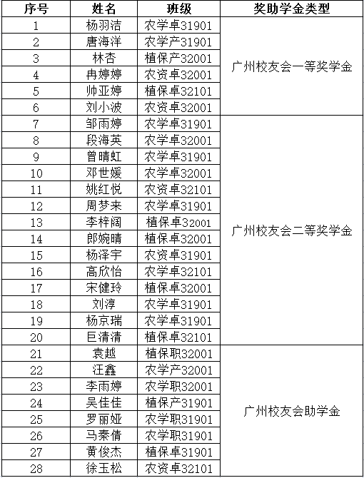 根据《长江大学“广州校友会奖助学金”管理办法》相关要求,经个人申请、学工办初审、学生答辩、评审领导小组审定等程序,我院2022年广州校友会奖助学金的评审工作已结束,现将评审结果向全院师生进行公示: