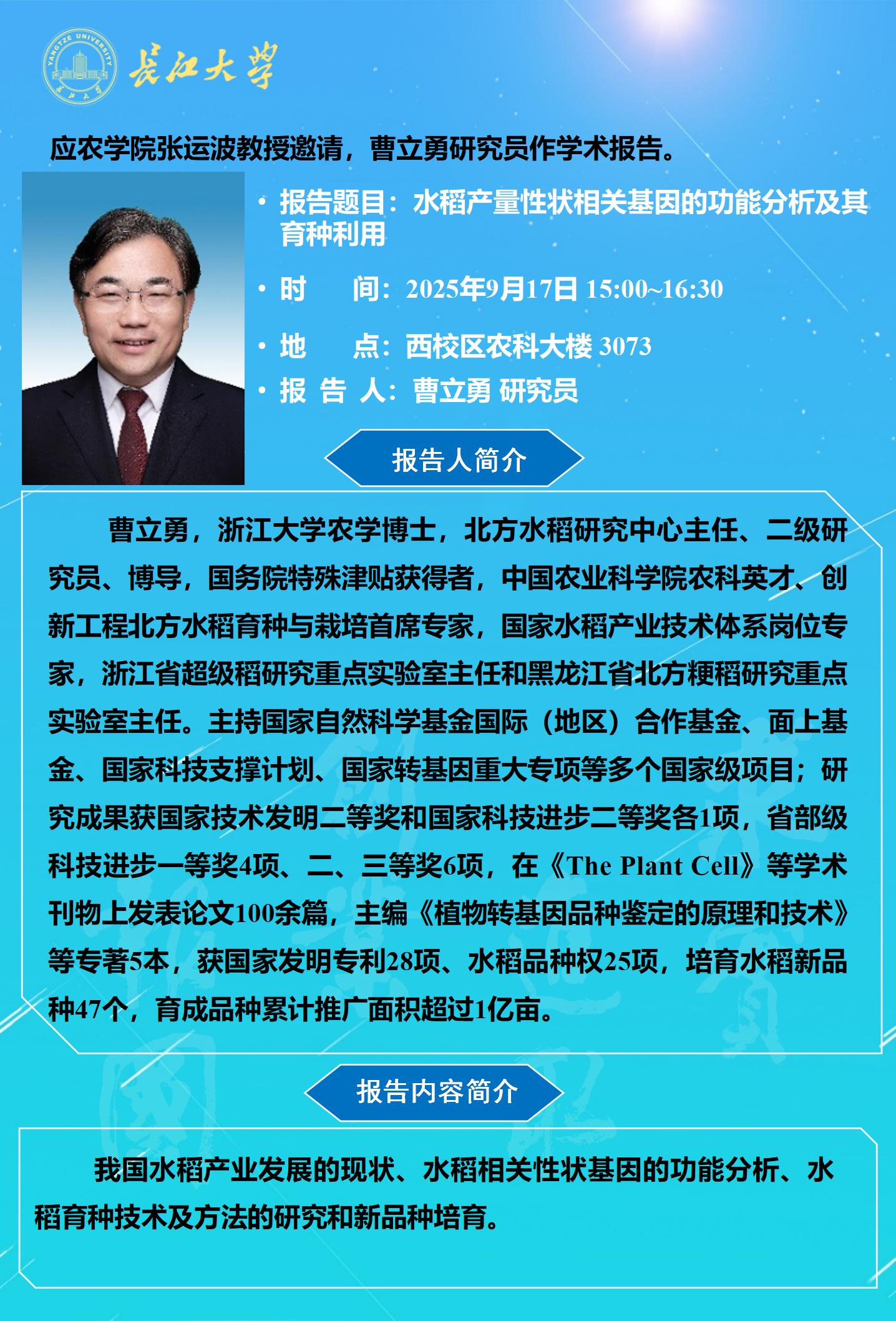 三亿(中国)一站式服务官网2025年学术报告(十六):水稻产量性状相关基因的功能分析及其育种利用