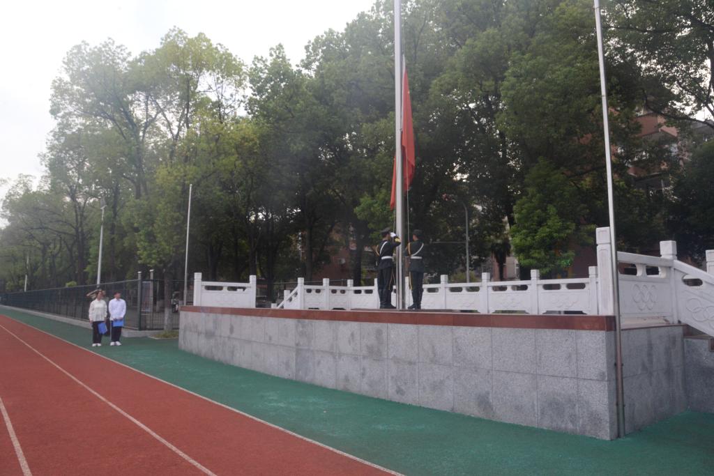 清晨七时整,升旗仪式正式开始。在庄严的国歌声中,我院升旗手们将五星红旗冉冉升起,全体师生肃然而立,奏国歌,行注目礼。