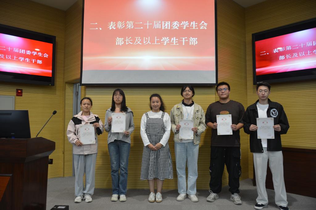 在庄重洪亮的国歌中,会议拉开了帷幕。会议伊始,大会表彰了第二十届团委学生会部长及以上学生干部。接着,学工队伍成员与主席团成员依次上台介绍了各自分管的部门和工作。付雪娇老师对各位新干事表达了热烈欢迎。