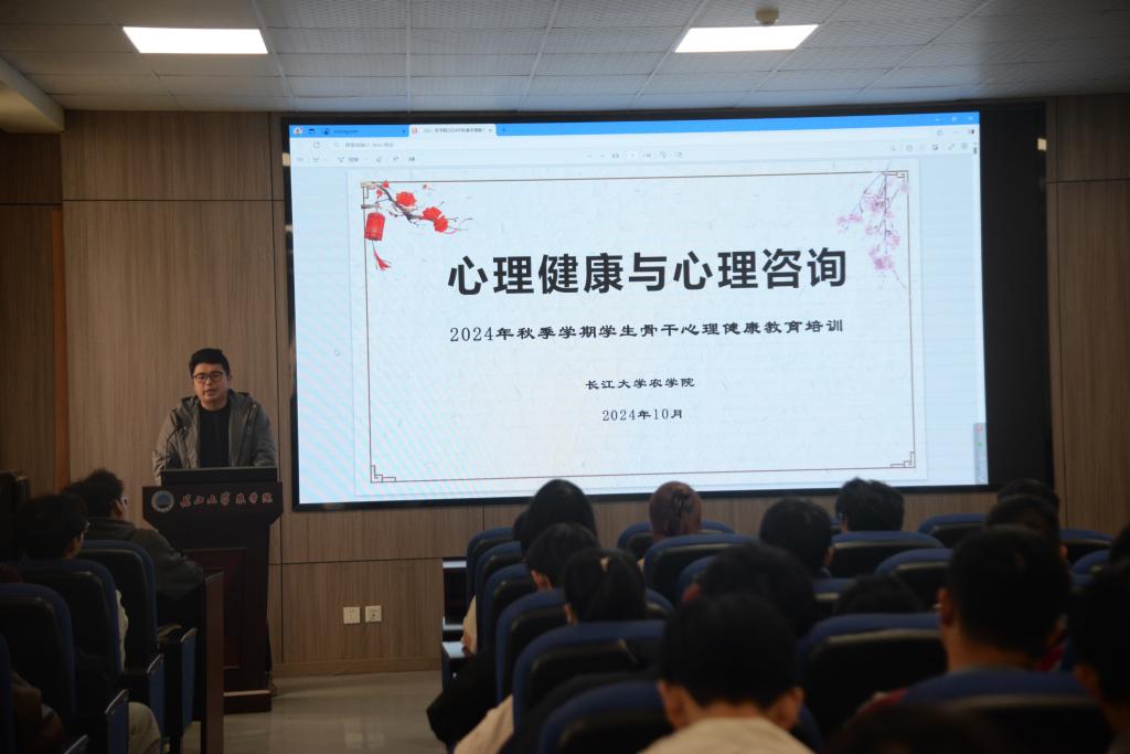 (见习记者 严树彬/文 郑怡乐/摄)为进一步帮助2024级新生完成角色转换,引导其积极适应崭新的大学生活,不断提升新生骨干的自助与助人水平,2024年10月22日中午,三亿(中国)一站式服务官网组织开展2024年秋季学期新生骨干心理健康教育培训。学院心理专干林香亮主讲,新生学生干部参加培训。