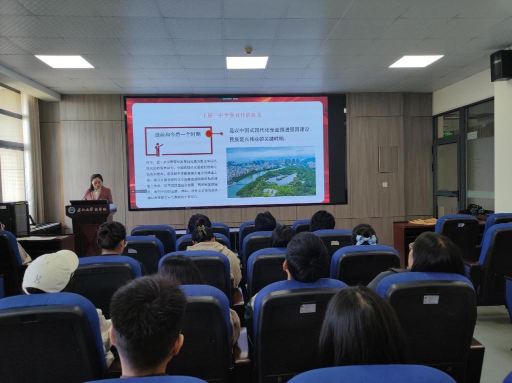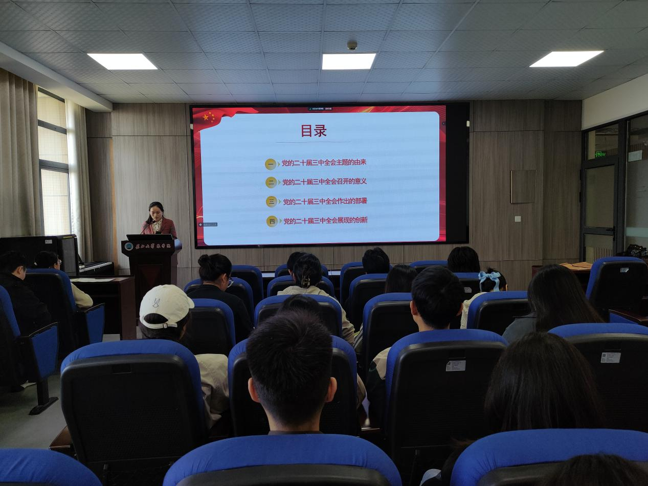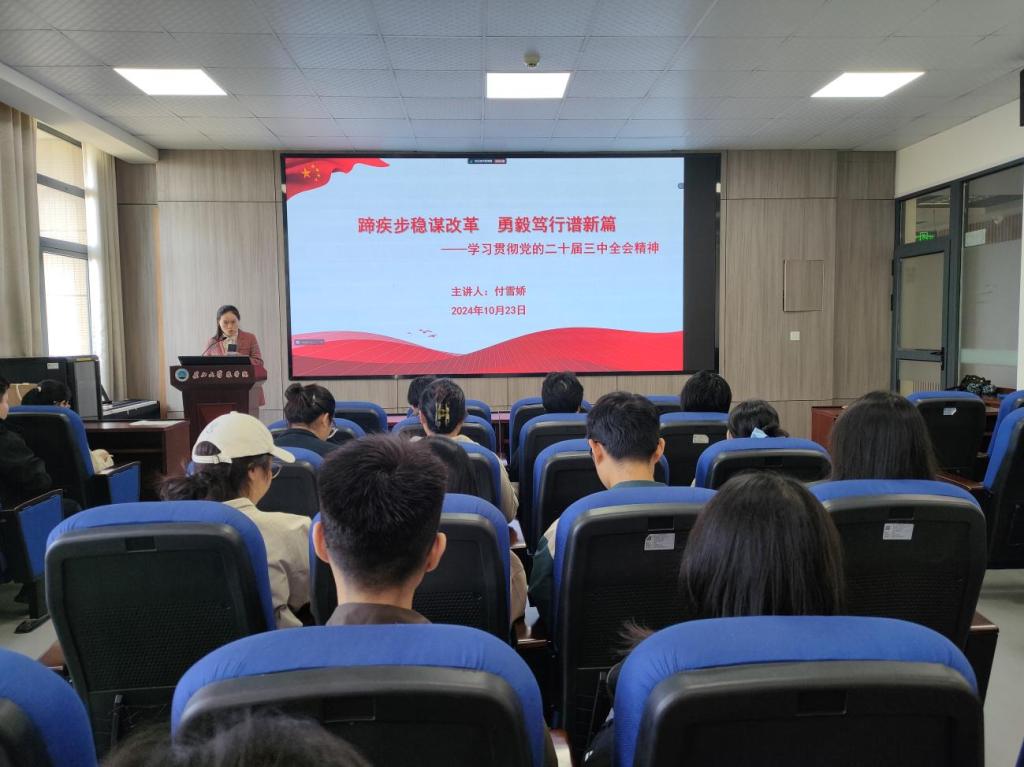 (通讯员 任娇 宋梦圆)为深入学习贯彻党的二十届三中全会精神,引导广大青年深刻领会全会精神,激发他们的责任感与使命感。10月23日,三亿(中国)一站式服务官网团委书记付雪娇在农科大楼3073会议室以“蹄疾步稳谋改革 勇毅笃行谱新篇”为题为80余名党员、积极分子上了一堂精彩的思政课。