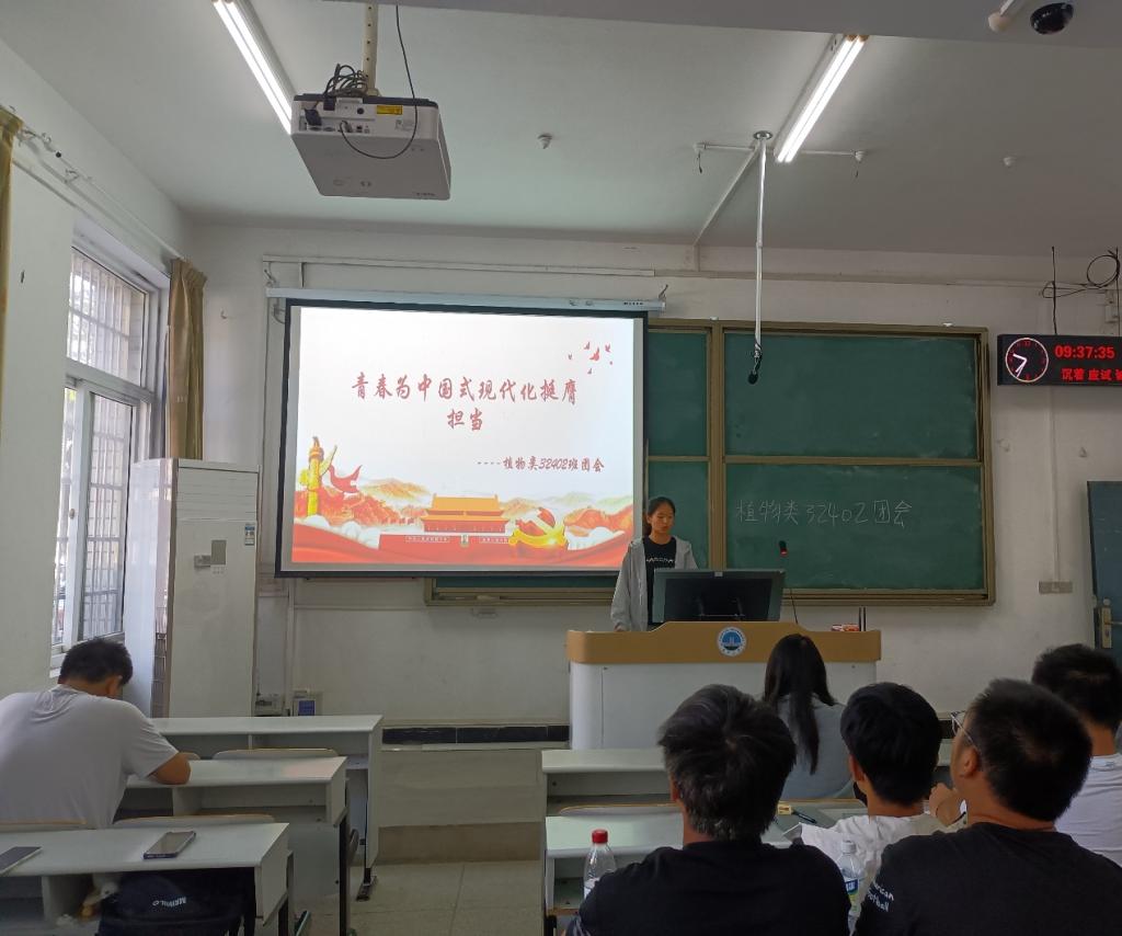 植物类32402班团支部副书记张蕊于10月19日在七教408带领同学们开展了本月团会活动。通过PPT讲解、小组讨论等方式深入学习习近平总书记重要文章《大力弘扬伟大爱国主义精神,把强国建设、民族复兴伟业不断推向前进》,切实增强“四个自信”,夯实爱党爱国爱社会主义的思想根基,引导支部青年将个人发展融入国家命发展,用行动践行“请党放心,强国有我”的青春誓言。