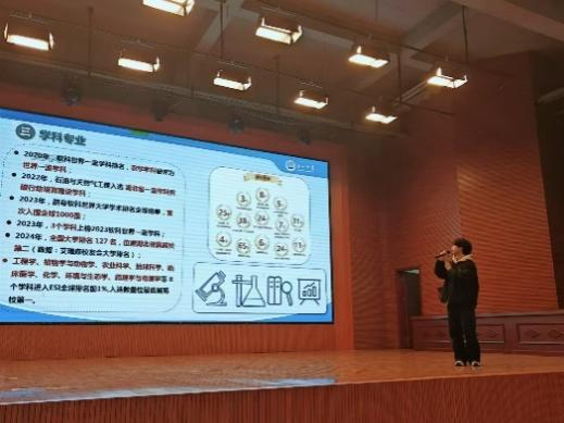 寒假期间张可欣和她的小伙伴们以长江大学学子身份回到高中母校宣传,她们拜访了曾经的高中老师,老师们也关心的询问了其在大学的生活和学习状态,寒暄过后便和老师一起去布置场地和走了一下流程。随着学弟学妹们的入场我们的活动也正式开始,张可欣首先介绍了长江大学的基本校情和科研成果,还详细的讲解了长江大学历年来对于技能高考批次招收人数的变化,然后还与学弟学妹们进行了一些互动,向他们解答了关于长江大学的一些疑问和分享了一些学习经验,最后还建立了一个群聊,方便为学弟学妹们随时解疑答惑。