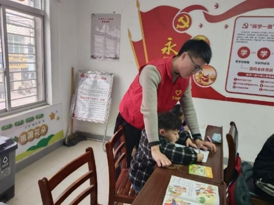 图为 植保职32301景文卓在湖北省襄阳市襄城区欧庙社区参加社区服务