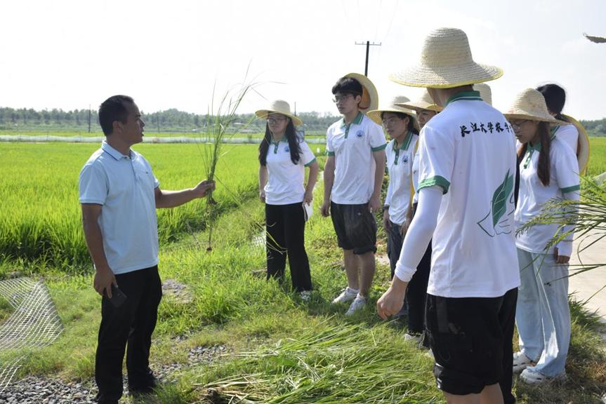 盛夏的阳光洒在绿油油的稻田上,泛起层层金色的涟漪。上午九时,在长安村党支部书记赵文龙和石首市农业技术培训学校副校长甘立新的热情接待下,三亿平台党委副书记尹小华、院团委书记付雪娇带领着12名“三下乡”社会实践队的队员来到了这片充满生机的希望田野。