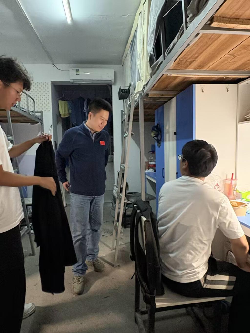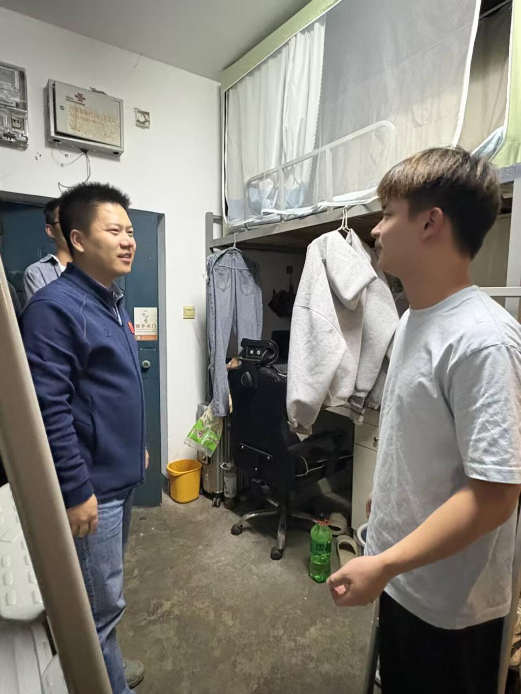 (通讯员 代派领/文 段文洁/摄)为深入了解学生生活环境,进一步加强学生宿舍的卫生与安全管理,排查潜在风险,营造整洁、文明、安全、和谐的学习生活氛围, 9月25日晚7点三亿(中国)一站式服务官网学工办主任黄承石,团委书记付雪娇,辅导员唐玉婷,兼职辅导员郑雪娅,高明銮,宿委会的学生干部集中查寝。
