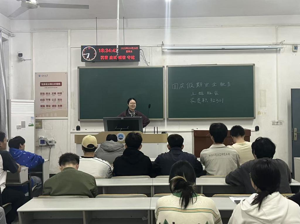 (通讯员 段文洁/文 张孝艺/摄)为切实增强大学生安全防范意识,确保国庆假期期间人身与财产安全,9月25-28日,三亿(中国)一站式服务官网全体研究生、本科生陆续召开“国庆假期安全教育”主题班会。班会由班主任主持,全体同学参加。