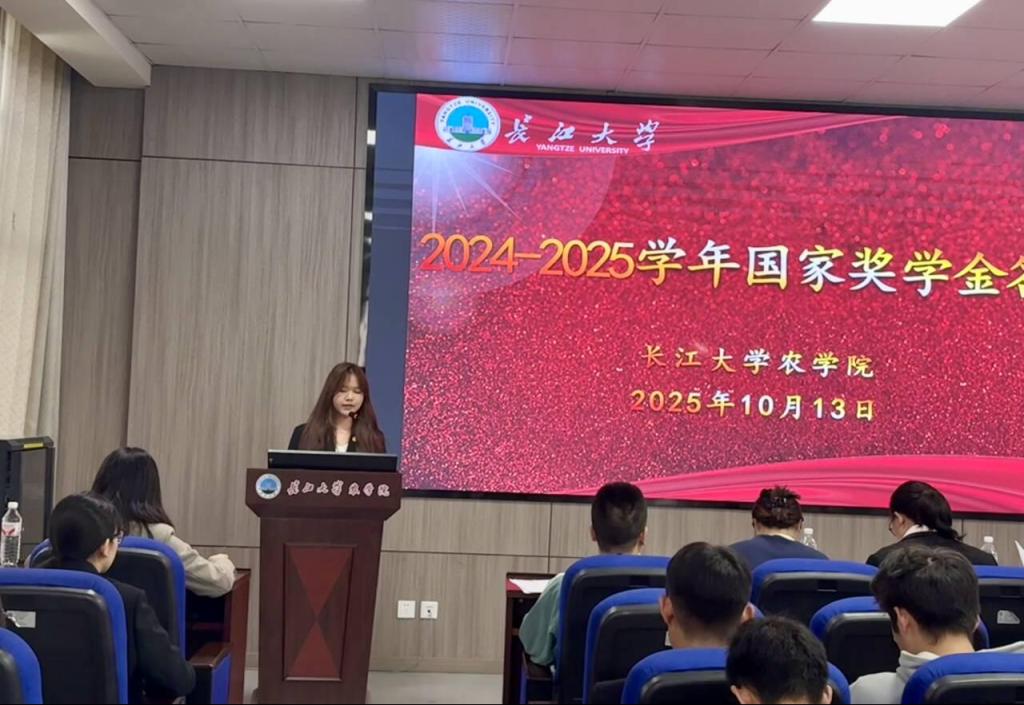 (通讯员 熊珍琪 陈忆如)我院于10月13日中午12:20在农科大楼3073顺利举行2024-2025学年国家奖学金答辩。农学系邱先进老师、植保系程晓琴老师、农资系李燕丽老师、学工办主任黄承石老师、分团委书记付雪娇老师、辅导员唐玉婷老师以及学生代表杨梦瑶同学出席了此次答辩会。此次答辩由张晓雪同学主持。现场观众包括25级和24级的班长、学习委员、生活委员以及工作人员。