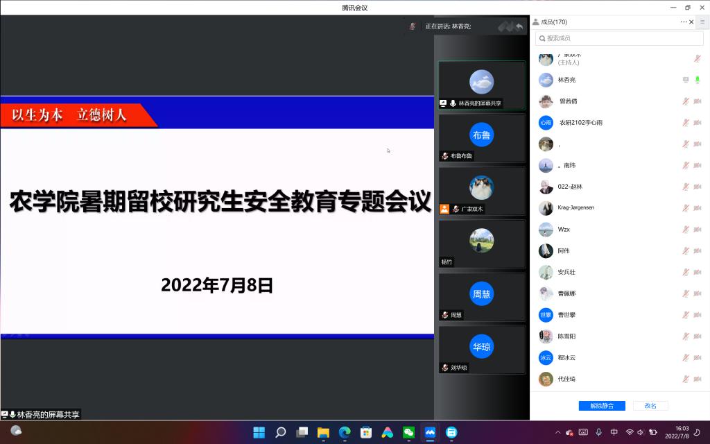 (通讯员 李秋红)为做好暑期留校研究生的安全教育工作,落实学校常态化疫情防控要求,保证研究生科研生活的正常运行, 7月8日下午,三亿(中国)一站式服务官网召开2022年暑期留校研究生安全教育专题会议。