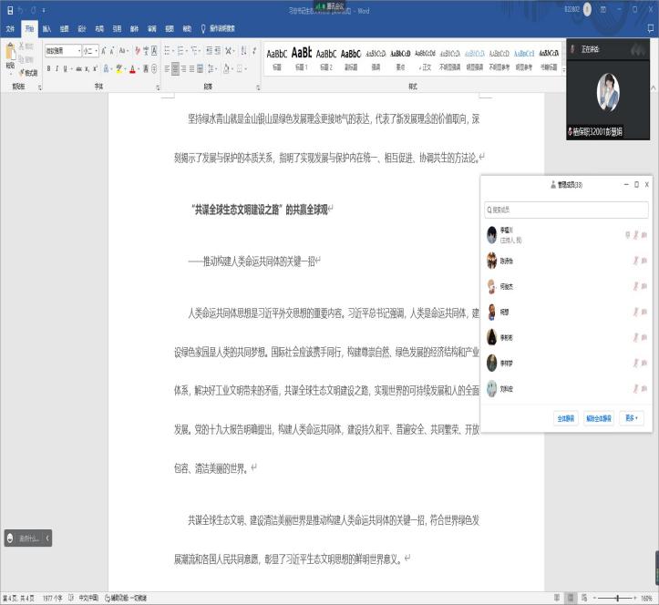 10月3日,学生会学习科创部组织各班在线上开展主题班会。各班级先后学习了习近平生态文明思想、《习近平的教师情》和《习近平总书记论青少年成长》,观看了《马克思主义中国化时代化》的讲座,并就“新时代的青年的思想应该是什么模样、新时代的青年应该向何处去、新时代的青年应该如何奋斗”进行了热烈讨论。