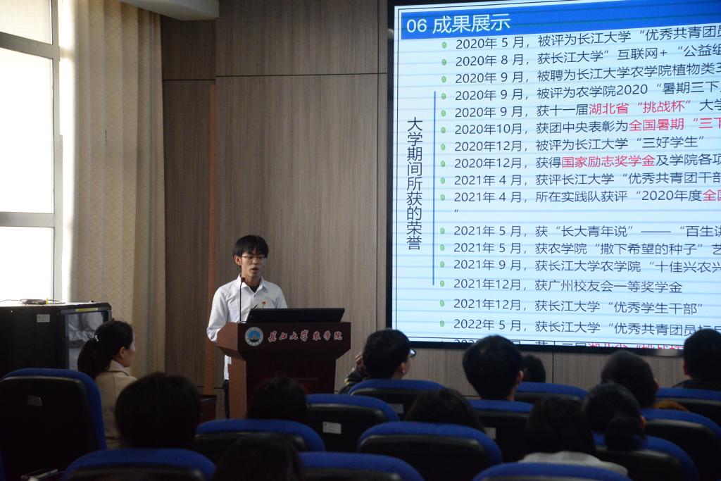 (见习记者 戴兵/文 冯华健/摄)为切实做好我院教育事业的发展,鼓励我院学生勤奋学习、努力进取、积极创新,11月25日中午12:20,我院于农科大楼3073举行广州校友会奖学金答辩会。本次答辩由党委副书记尹小华老师、农学系邓锋林老师、植保系尹军良老师、农资系吴启侠老师、学工办主任杨云锋老师、资助专干付雪娇老师、兼职辅导员毛国庆老师以及学生代表曾袁琳珺担任评委。本次答辩由权益保障部阳甜同学主持。
