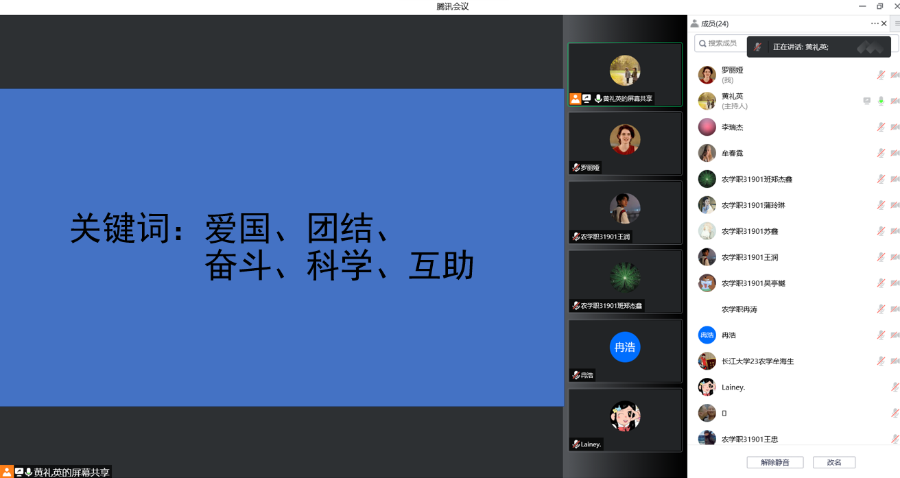 植保卓32001班班长围绕“爱国、团结、奋斗、科学、互助”五个关键词,以学习贯彻党的二十大精神为契机,在班内召开了“学习二十大,奋进新征程”主题班会。班会结束后,同学们纷纷表示对党的二十大精神有了更加深刻的认识,同时提升了爱国热情,激发了学习动力。