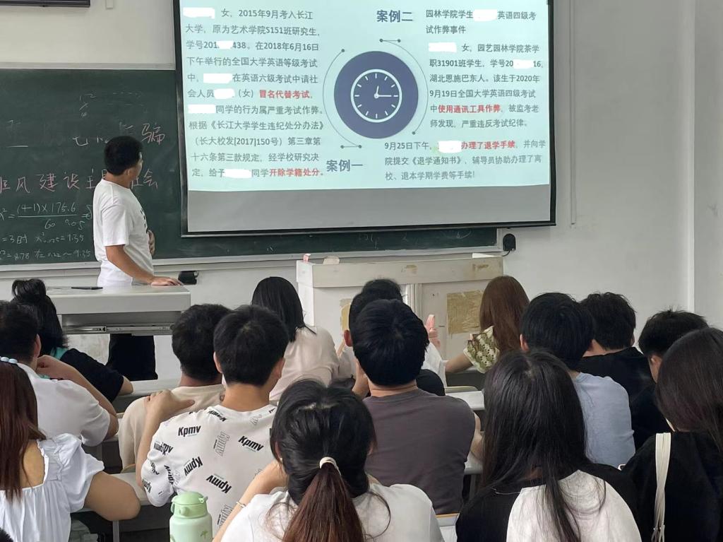 各班级在班主任或班长的主持下召开期末系列考试考风考纪教育班会,集体学习了考风考纪教育的相关文件和舞弊的法律后果,并签署了《长江大学学生考试诚信承诺书》。