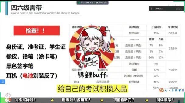“同学们,明天是大家第一次参加四级考试,把握好每个答题阶段的时间也很重要,还要规范填涂答题卡,预祝大家考出好成绩。”姜月兴说道。会议最后,姜月兴就第二天的四级考试做了一些提醒并分享了做题技巧,同时,还告诫同学们一定要沉着冷静,诚信应考。