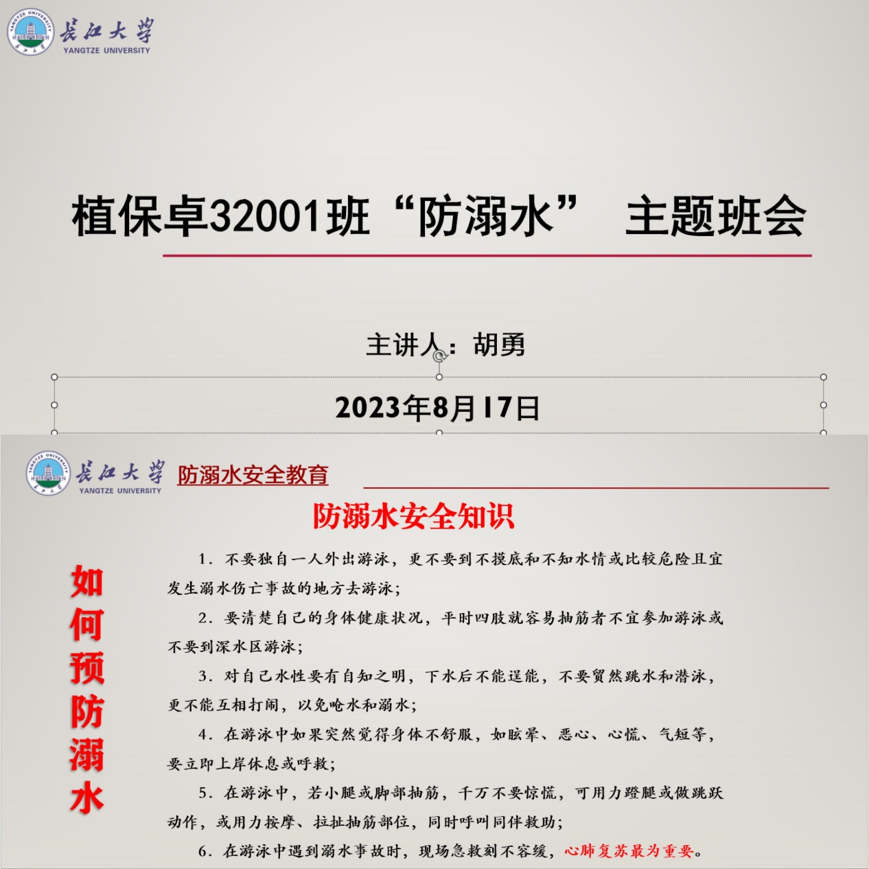 各班通过召开线上班会等多样化形式,组织全院学生学习《大学生防溺水安全常识》,并通过观看防溺水相关教育视频、收集与防溺水相关的素材等多种活动对学生进行了警示教育,给学生们列举了许多真实案例,并普及了溺水自救与救人的相关知识。 undefined