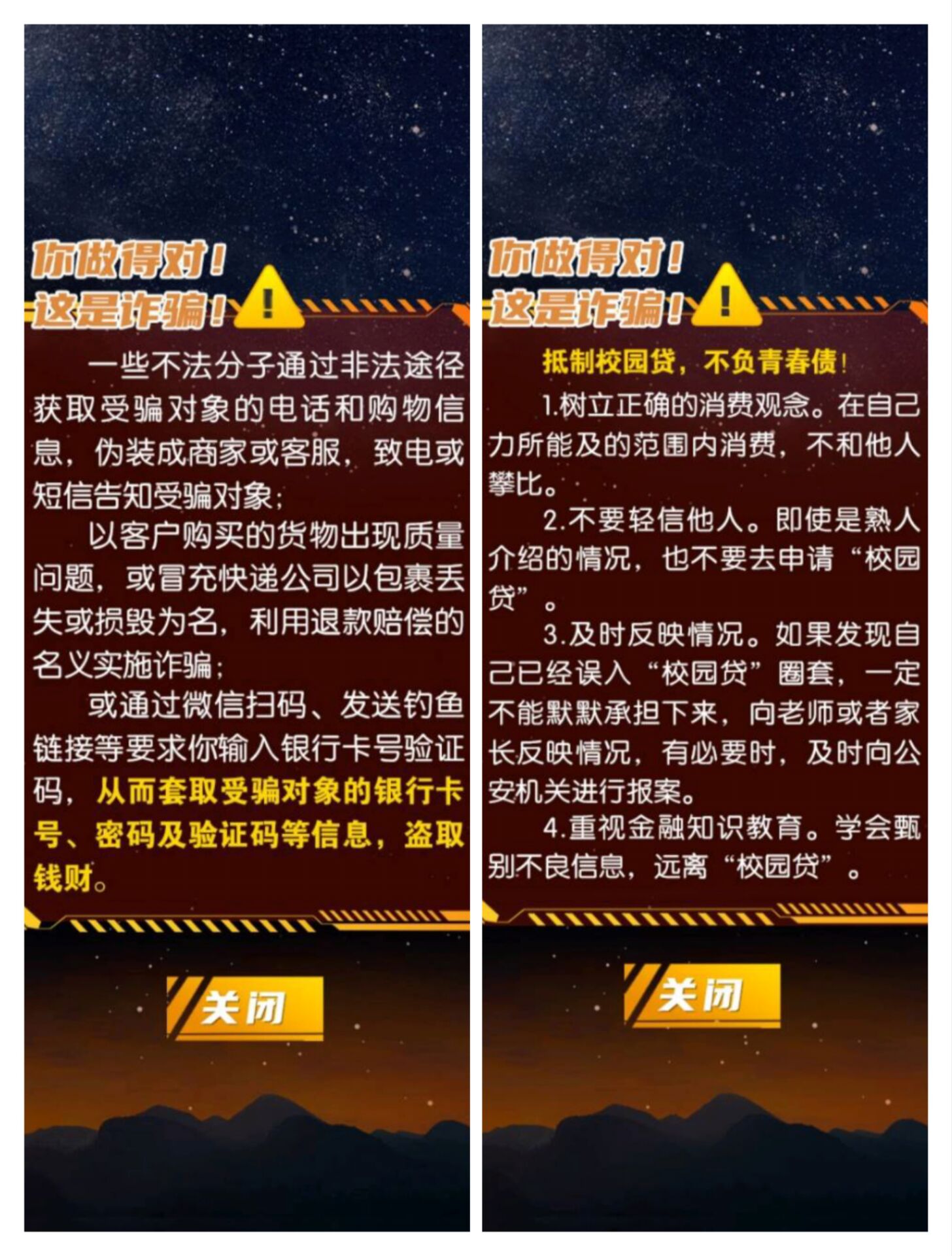 (通讯员 吴震涛 郑艳坪)为全面贯彻省教育厅的要求,进一步开展防范非法校园贷和电信诈骗教育学习的工作,提高同学们防诈骗意识及有效落实落细防诈骗安全教育,三亿(中国)一站式服务官网于10月15日至16日开展了以“防范电信诈骗及校园贷”为主题的线上星空班会。