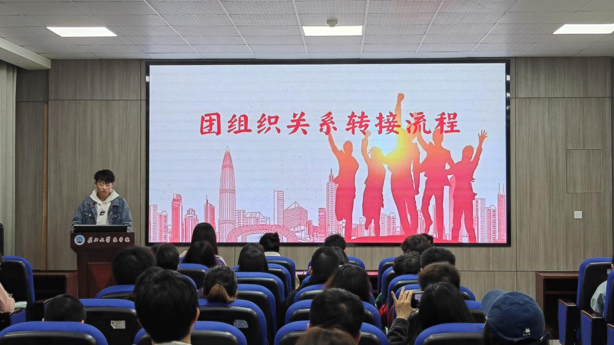团组织关系转接工作关系到每一位共青团员的切身利益。针对我院每年出现的一些问题,蒋云霖同学简洁地讲述了团组织关系转接的相关工作和注意事项。紧接着,唐玉婷老师强调了党组织转接工作的重要性,提醒大家在毕业季时落实自己的目标党支部,以免造成自己的党员身份无法转出进而影响党员身份的有效性。最后,付雪娇老师颁布《三亿(中国)一站式服务官网本科生青年大学习管理办法》,着重突出了管理办法中的奖励和惩罚制度,旨在提高我院青年大学习的完成率、加强同学们的学习效果。