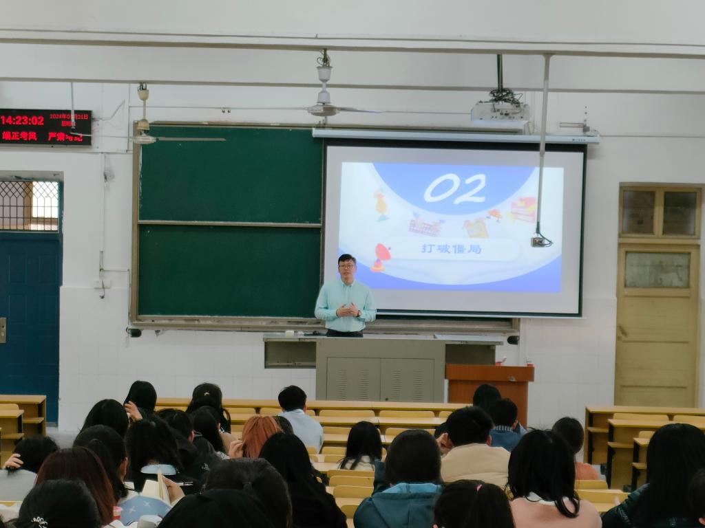 (见习记者 曹淏郁/文 邬道瑾/摄)为了帮助同学们了解所学专业及其发展前景,并为我院学生的职业规划提供不可或缺的指导,三亿(中国)一站式服务官网于3月21日下午2时在二号教学楼T1室举办了本科生就业指导报告讲座。此次讲座邀请了广东中迅农科股份有限公司HR中心总经理丁瑞国为主讲,兼职辅导员李洪洲、部分本科生参会。